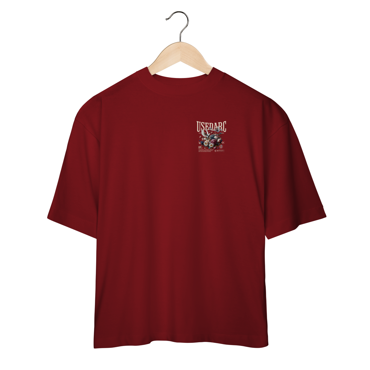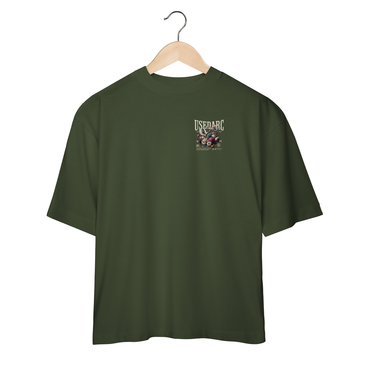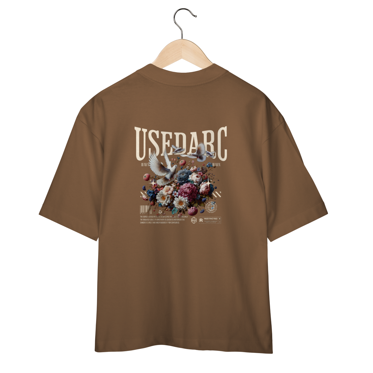 A Camiseta UseDarc Heaven Bloom traz uma composição artística marcante com flores detalhadas e pombas em movimento, criando um visual elegante e simbólico. O nome UseDarc aparece em destaque no topo, reforçando a identidade da marca. A mesma arte é aplicada na frente e no verso, oferecendo impacto visual em todos os ângulos.